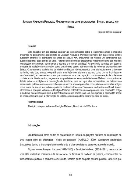 Mesmo de famlia escravocrata Joaquim Nabuco sempre foi um defensor do fim dessa forma de explorao do homem pelo homem. Alm disso pretende. O presente artigo procura identificar dentro das possibilidades das relaes de poder existentes no Brasil do sculo XIX o sentido que Joaquim Nabuco deu em seus escritos sua proposta abolicionista que aliada ao combate escravido visaria em ltima instncia implementar um programa de reformas elementares com vistas modernizao poltica e social do Imprio.