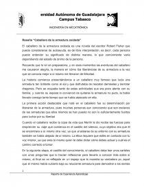 Resumen Del Caballero De La Armadura Oxidada Documentos De Investigacion Christopher